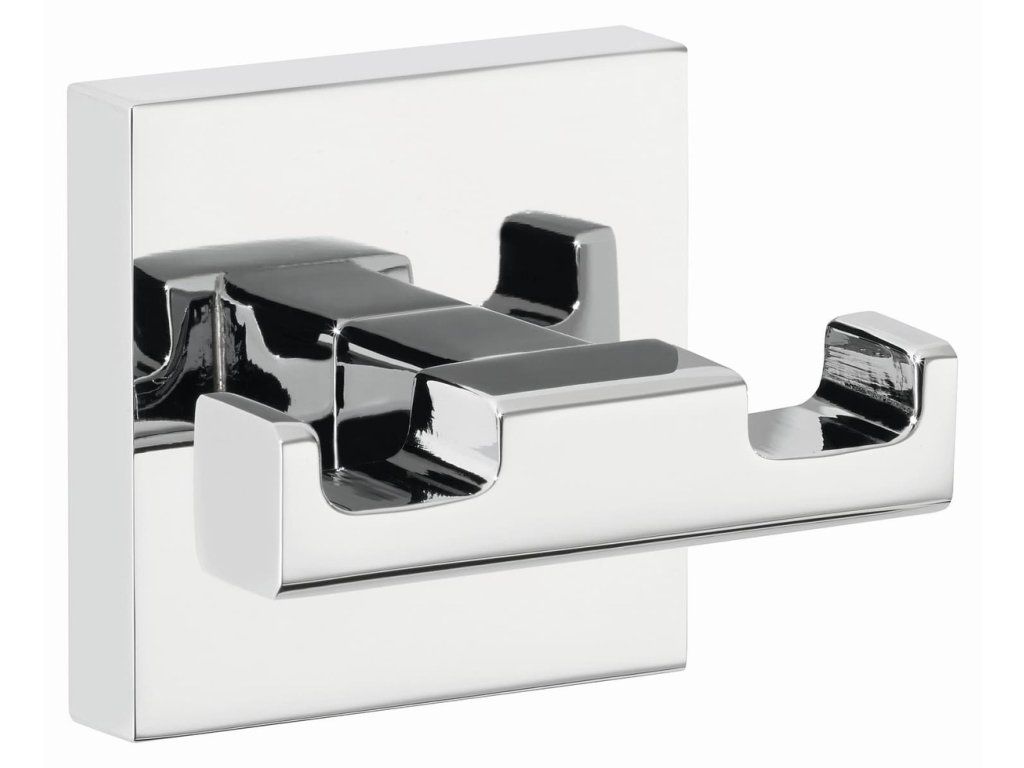 Háček vyniká moderním hranatým designem a provedením z pochromovaného kovu s vysokým leskem. Čtvercová nástěnná deska podtrhuje čistý a současný vzhled.